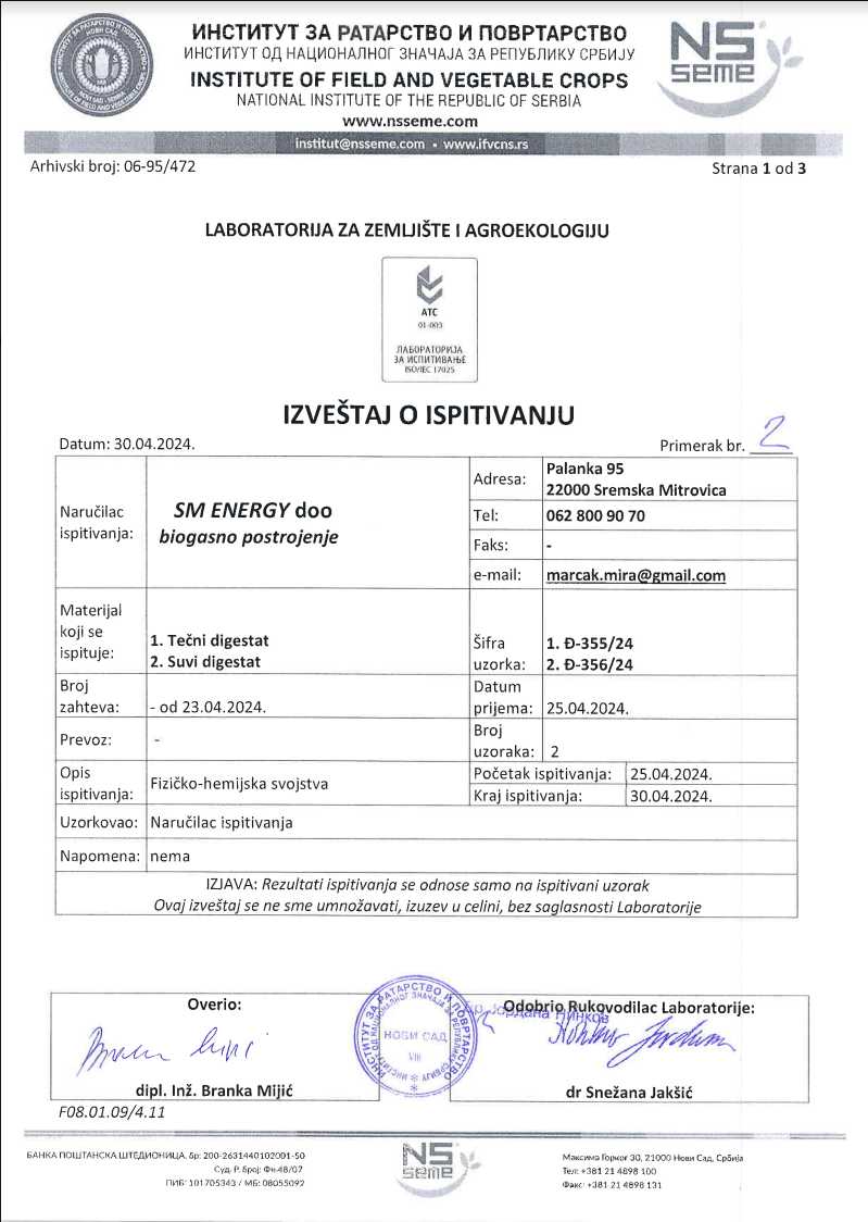 Naše biogasno postrojenje igra ključnu ulogu u ovom procesu, koristeći anaerobnu digestiju kako bi pretvorila organski otpad iz poljoprivredne proizvodnje u korisnu zelenu energiju, uz minimalan uticaj na okolinu. Kroz ovaj proces, smanjujemo emisiju štetnih gasova, sprečavamo zagađenje zemljišta i podzemnih voda, te istovremeno proizvodimo visokokvalitetno đubrivo koje služi kao održiva zamena za mineralna đubriva.